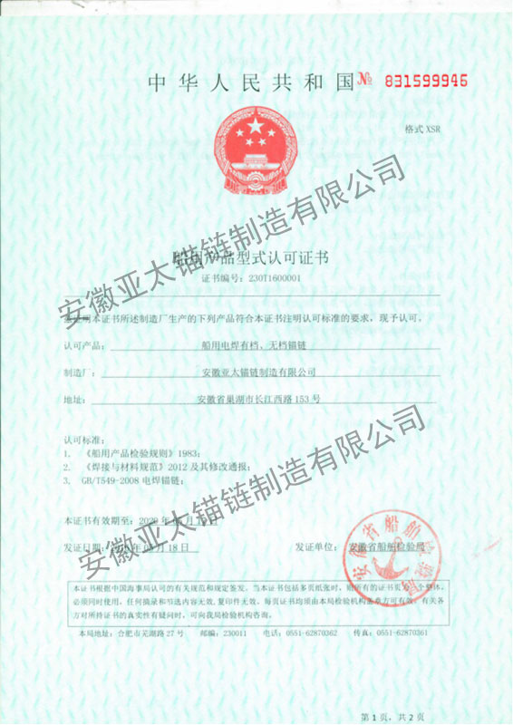 安徽亞太錨鏈制造有限公司是國(guó)家高新技術(shù)企業(yè),也是國(guó)家GB/T 549-2017《電焊錨鏈》標(biāo)準(zhǔn)的起草和制定單位之一。公司旗下設(shè)有錨鏈分廠、浮標(biāo)分廠、舾裝件分廠等多個(gè)分廠。公司專業(yè)從事φ12.5mm-φ107mm二、三級(jí)船用錨鏈、浮標(biāo)錨鏈、錨鏈附件,錨、船舶曬裝產(chǎn)品、航標(biāo)、系船浮、船型標(biāo)、多種規(guī)格海洋監(jiān)測(cè)浮標(biāo)及航標(biāo)燈等產(chǎn)品的生產(chǎn)、安裝和服務(wù)。目前公司的產(chǎn)品銷往全國(guó)各地船廠、碼頭、航標(biāo)處、航道局、海洋局,并已走上國(guó)際市場(chǎng),如東南亞、中東、歐美等國(guó)家。